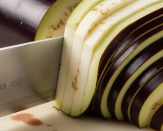 Patlıcanları boylamasına (uzunlamasına) çok ince olacak şekilde dilimle. Bıçakla zorlanırsan mandolin rende kullanabilirsin.