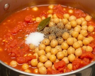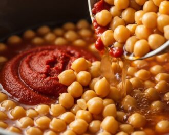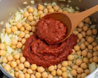 Önceden haşladığınız nohutları ekleyin, karıştırarak salçayla bütünleştirin.